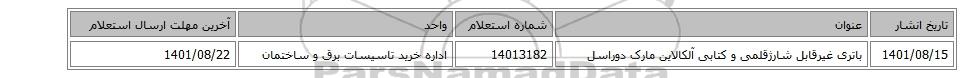 تاریخ انشارعنوانشماره استعلامواحدآخرین مهلت ارسال استعلام
