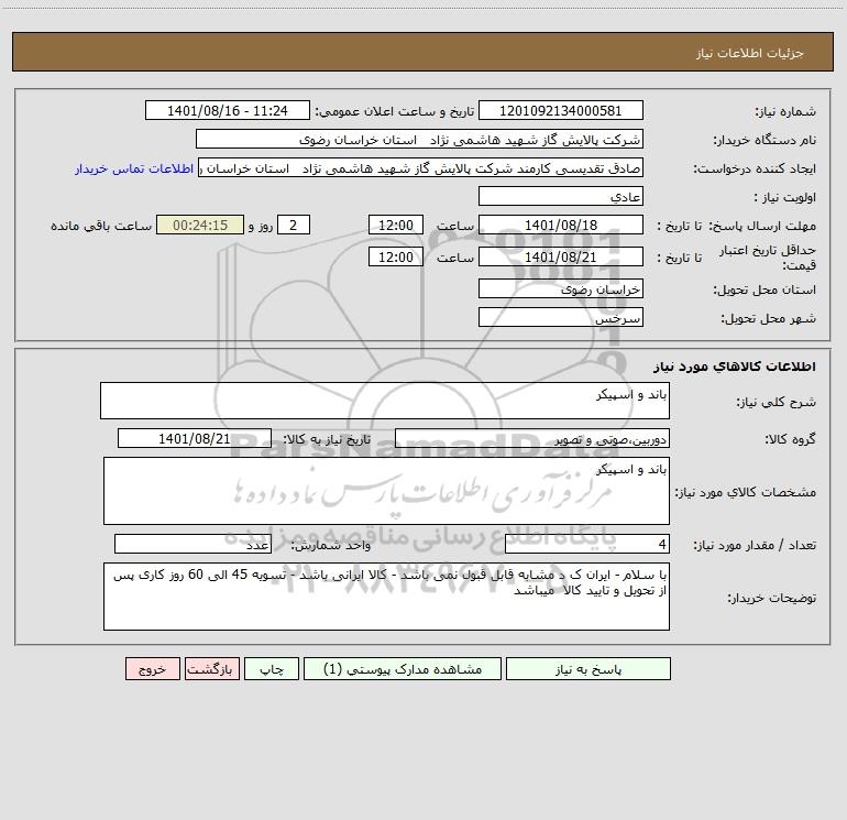 مشخصات کالای مورد نیاز: باند و اسپیکر
