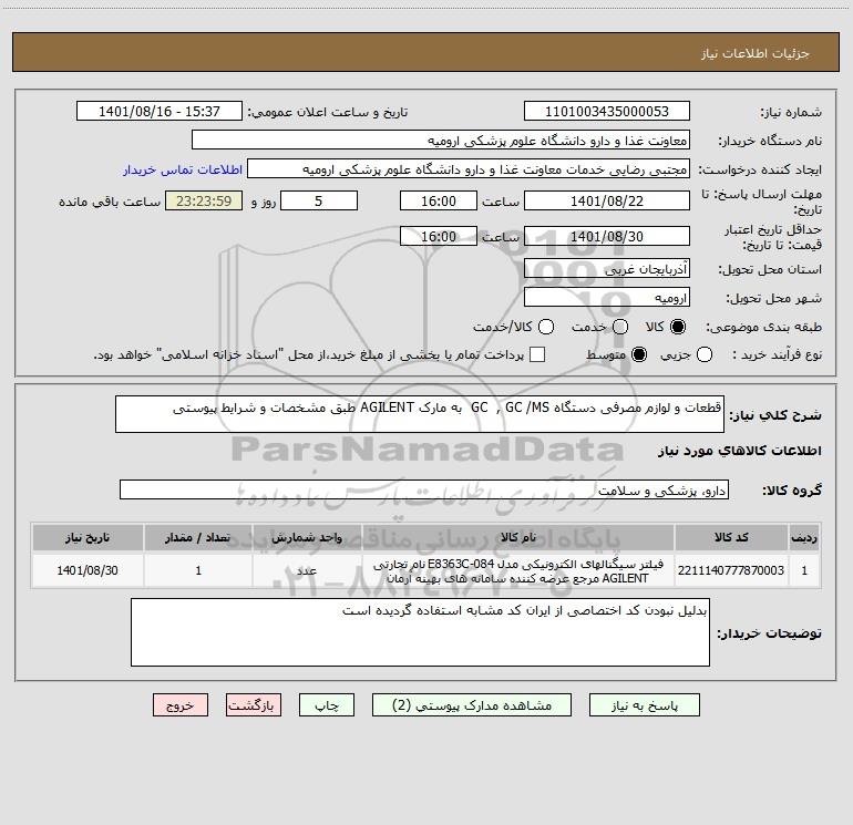 نام دستگاه خریدار:معاونت غذا و دارو دانشگاه علوم پزشکی ارومیه