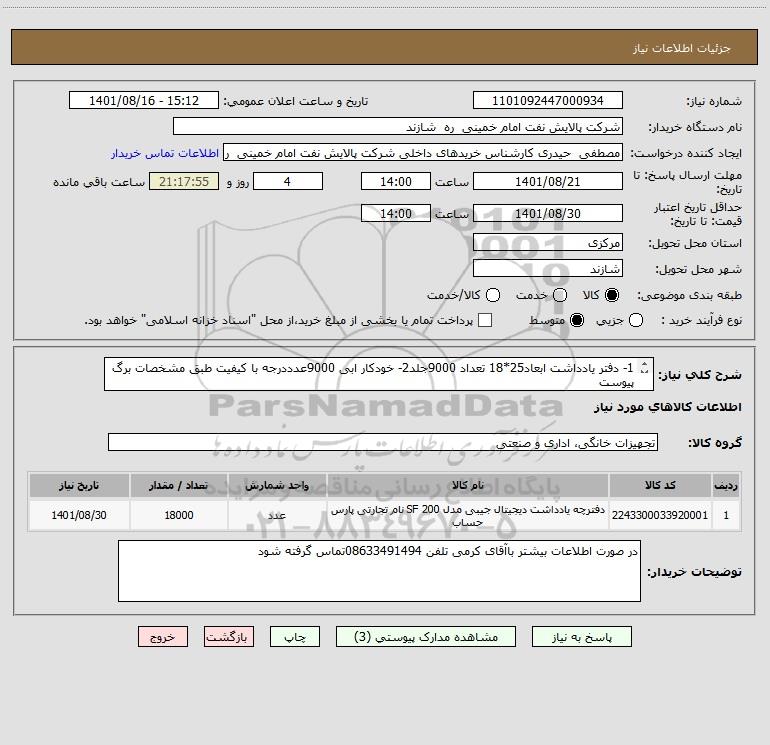 نام دستگاه خریدار:شرکت پالایش نفت امام خمینی ره شازند