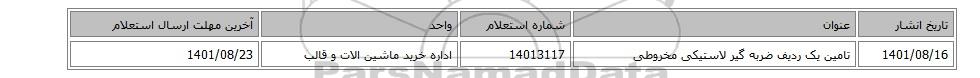 تاریخ انشارعنوانشماره استعلامواحدآخرین مهلت ارسال استعلام