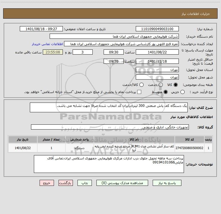 نام دستگاه خریدار:شرکت هواپیمایی جمهوری اسلامی ایران هما