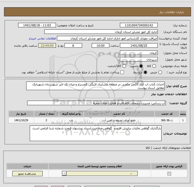 نام دستگاه خریدار:اداره کل امور عشایر استان کرمان