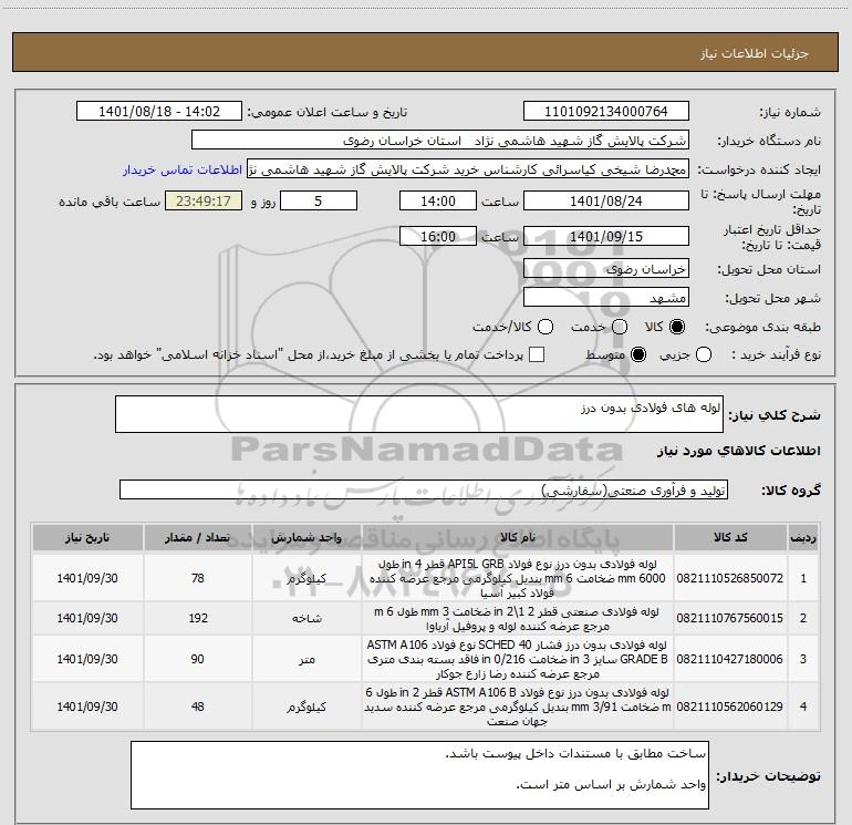 شرح کلی نیاز: لوله های فولادی بدون درز