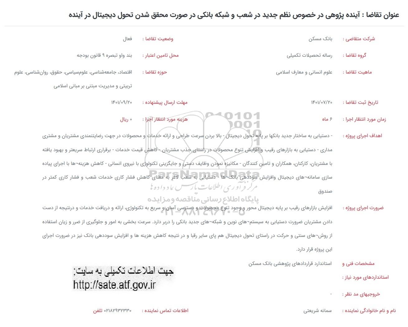 14 فراخوان نقش مرکز مشاوره در بهبود تجربه مشتری در بانک مسکن 9635089 1404/07/10 new not special not payed تهران