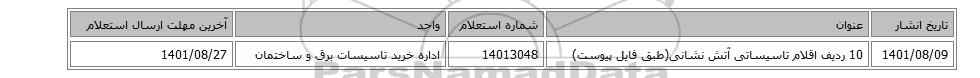 استعلام، 10 ردیف اقلام تاسیساتی آتش نشانی(طبق فایل پیوست), 10 ردیف اقلام تاسیساتی آتش نشانی(طبق فایل پیوست)