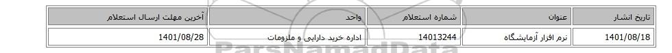 1401/08/18نرم افزار آزمایشگاه14013244اداره خرید دارایی و ملزومات1401/08/28
