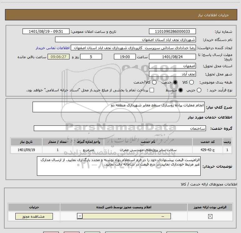 شرح کلی نیاز: انجام عملیات پیاده روسازی سطح معابر شهرداری منطقه دو