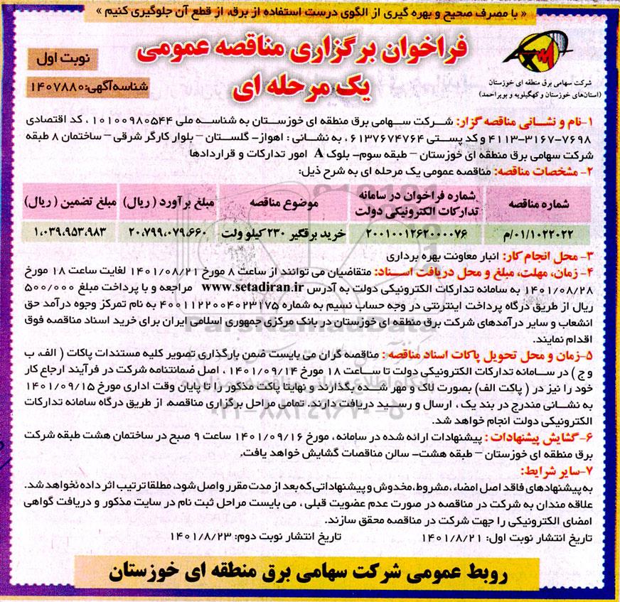 | 1022022/ 01 / م | 2001001262000076 | خرید برقگیر 230 کیلوولت | 20.799.079.660 | 1.039.953.983 |