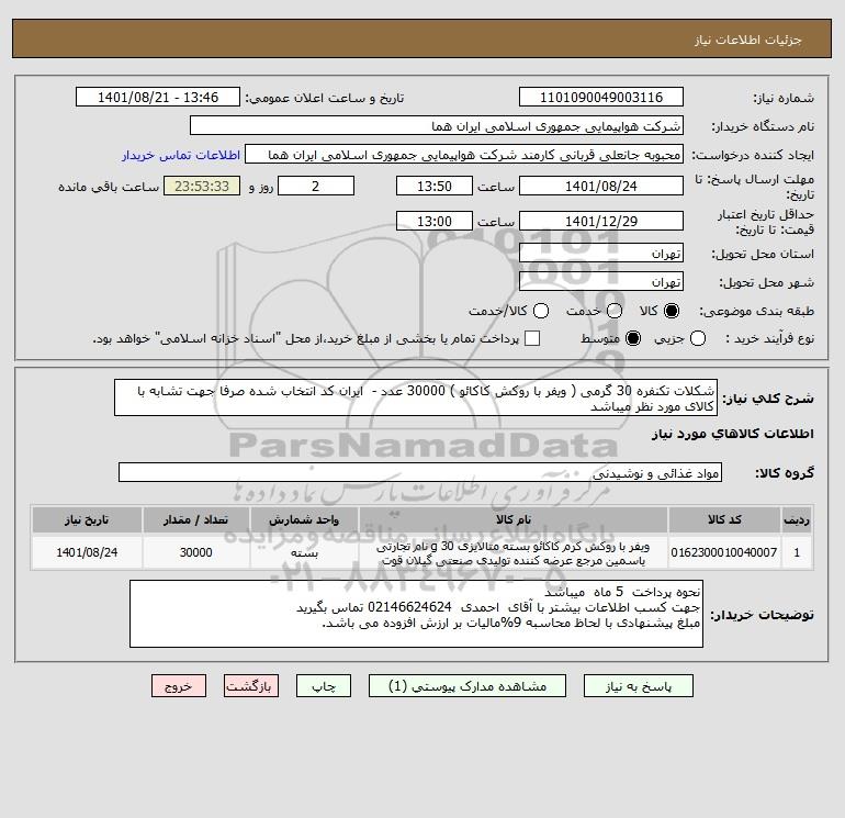 نام دستگاه خریدار:شرکت هواپیمایی جمهوری اسلامی ایران هما