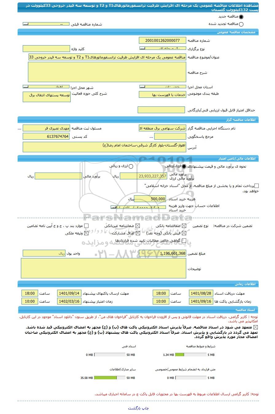 | مبلغ تضمین | 1,196,661,368 | واحد پول | ریال |