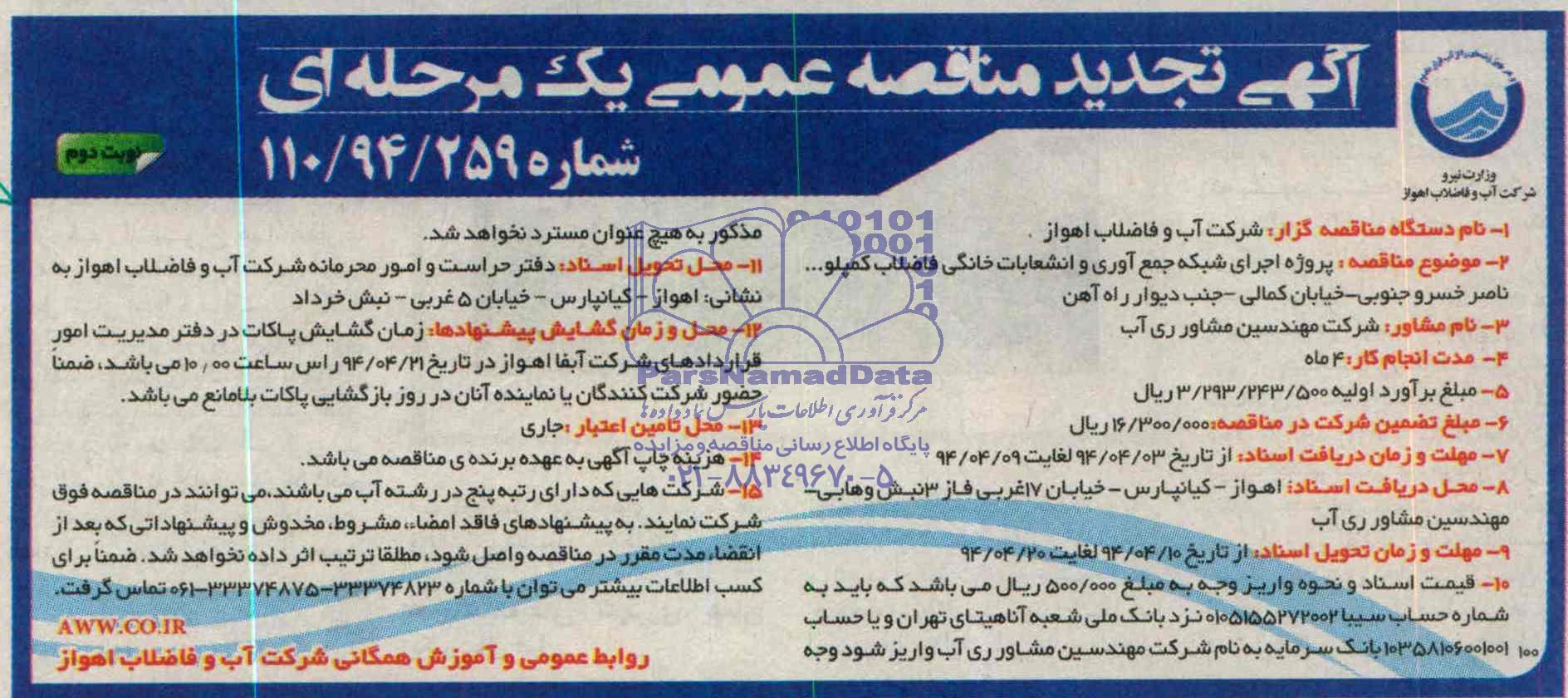 تجدید مناقصه پروژه اجرای شبکه جمع آوری و انشعابات خانگی فاضلاب از کلیه افراد متخصص و شرکتها واجد شرایط دعوت به عمل میآید در مناقصه با کد خبرگزاری پارس نماد: 514001 شرکت نمایند.