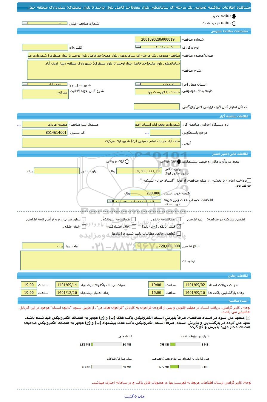 | نام دستگاه اجرایی مناقصه گزار | شهرداری نجف اباد استان اصفهان | مسئول ثبت مناقصه | محدثه عزیزی |