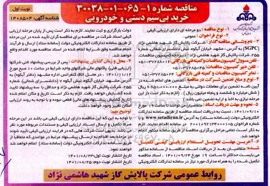 مناقصه شماره 1- 065 - 01 - 30038 - نوبت اول