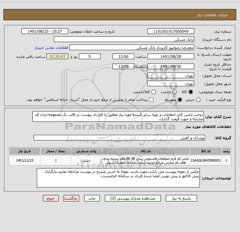 مناقصه خرید لباس فرم اداری