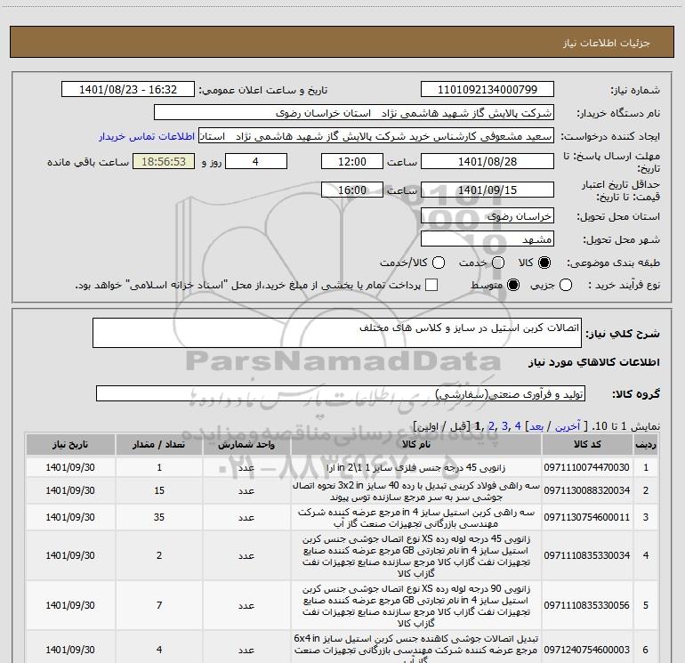 شرح کلی نیاز: اتصالات کربن استیل در سایز و کلاس های مختلف