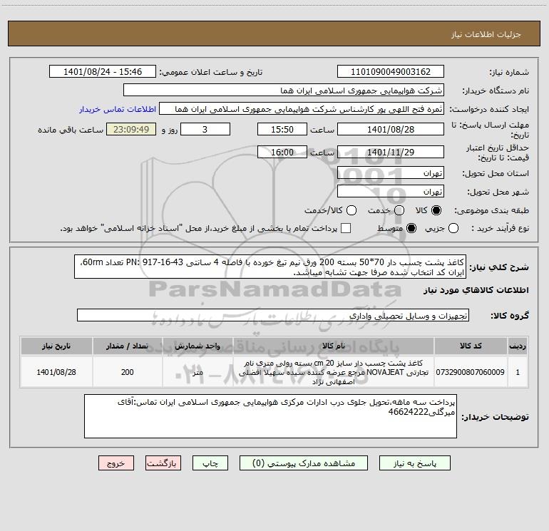 نام دستگاه خریدار:شرکت هواپیمایی جمهوری اسلامی ایران هما