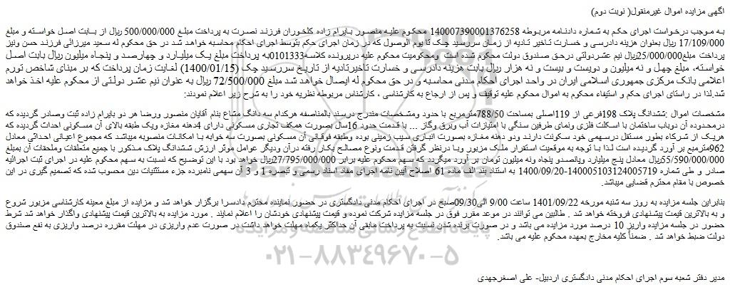 اگهی مزایده اموال غیرمنقول( نوبت دوم)