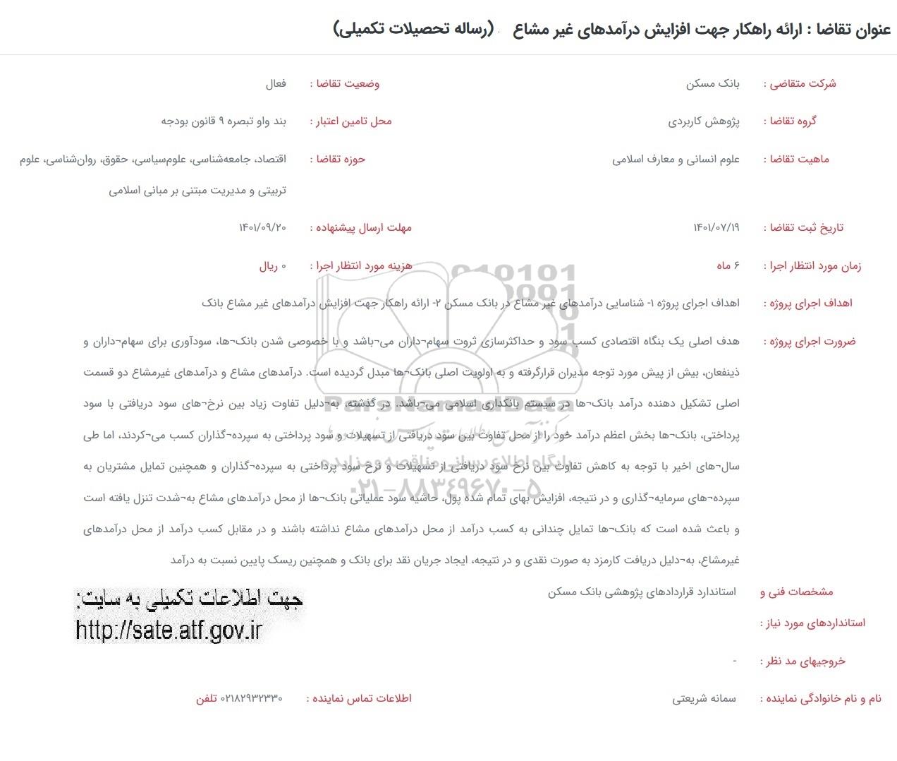 10 فراخوان نقش مرکز مشاوره در بهبود تجربه مشتری در بانک مسکن 9635089 1404/07/10 new not special not payed تهران