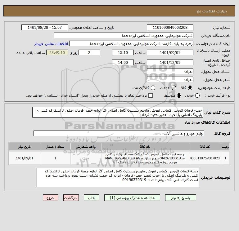 نام دستگاه خریدار:شرکت هواپیمایی جمهوری اسلامی ایران هما