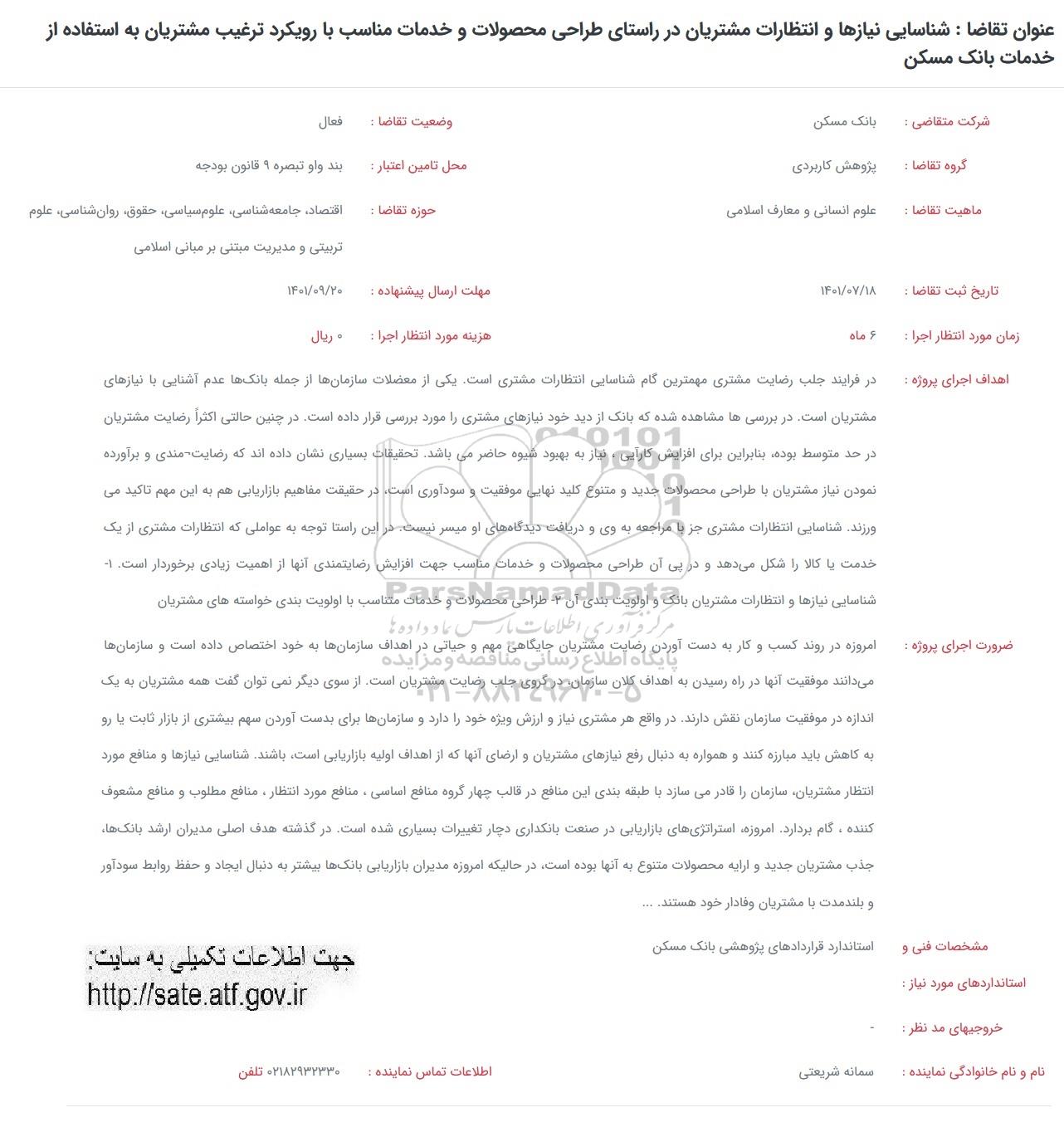 عنوان تقاضا : شناسایی نیازها و انتظارات مشتریان در راستای طراحی محصولات و خدمات مناسب با رویکرد ترغیب مشتریان به استفاده از خدمات بانک مسکن