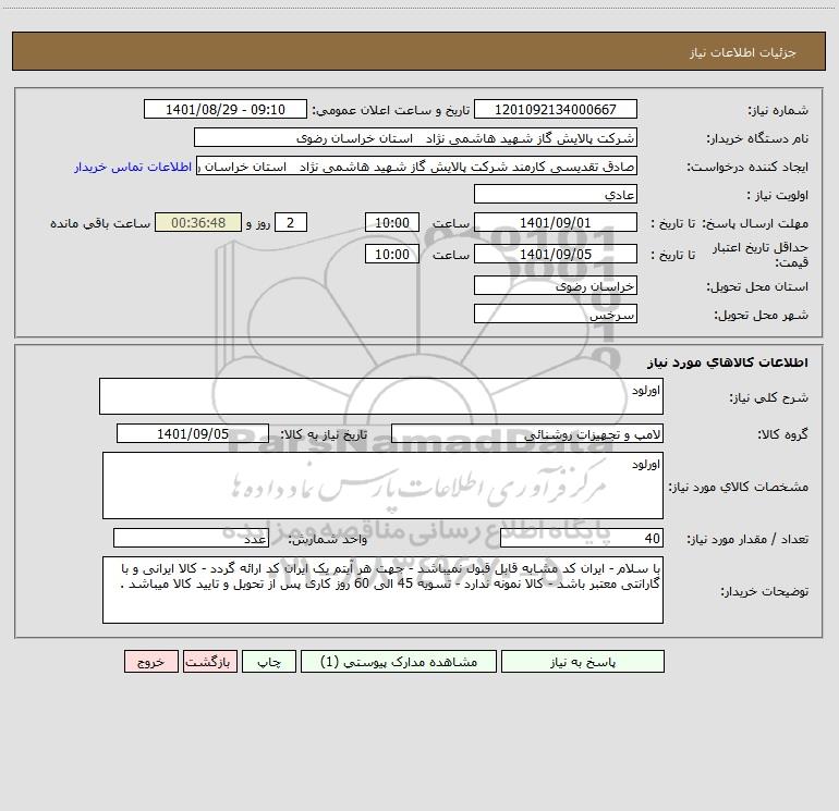نام دستگاه خریدار:شرکت پالایش گاز شهید هاشمی نژاد استان خراسان رضوی