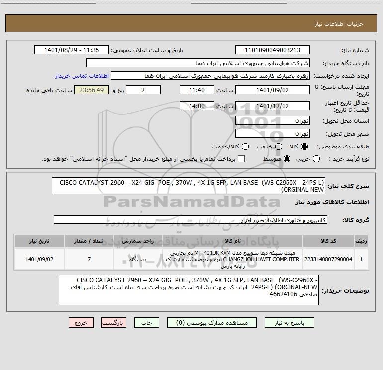 نام دستگاه خریدار:شرکت هواپیمایی جمهوری اسلامی ایران هما