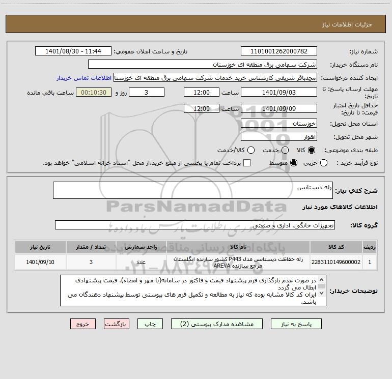 نام دستگاه خریدار:شرکت سهامی برق منطقه ای خوزستان