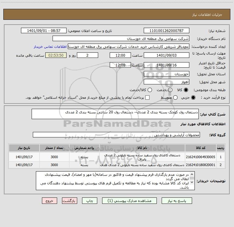 شرح کلی نیاز: دستمال رول کوچک بسته بندی 2 عددی-- دستمال رول 20 سانتی بسته بندی 2 عددی