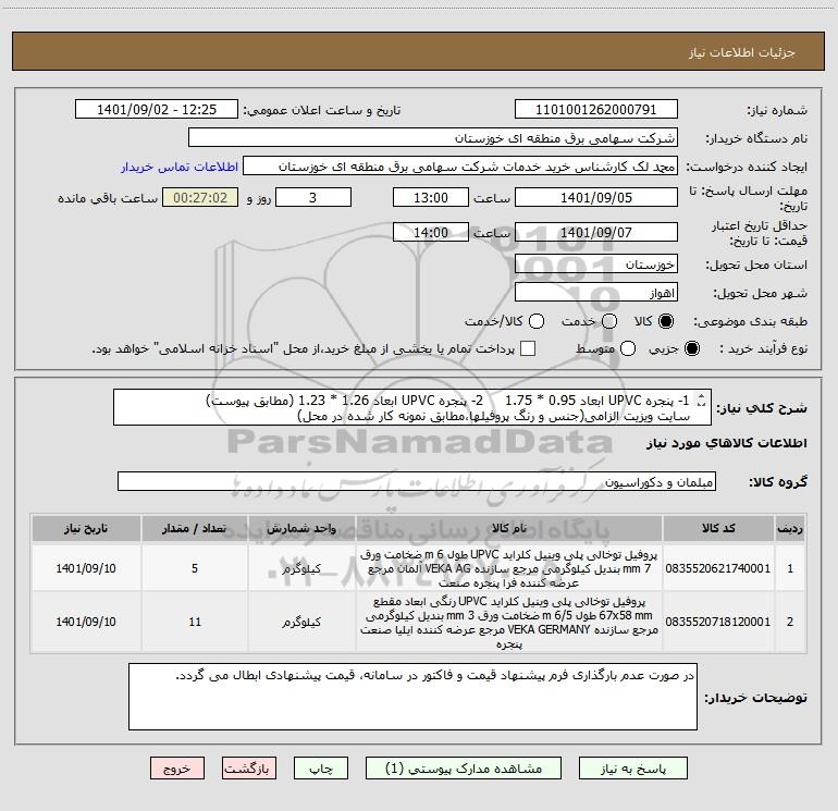 شرح کلی نیاز: 1- پنجره UPVC ابعاد 0.95 * 1.75 2- پنجره UPVC ابعاد 1.26 * 1.23 (مطابق پیوست)