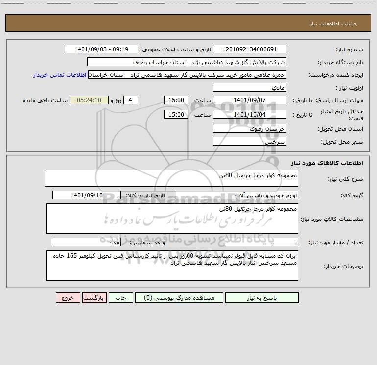 نام دستگاه خریدار:شرکت پالایش گاز شهید هاشمی نژاد استان خراسان رضوی