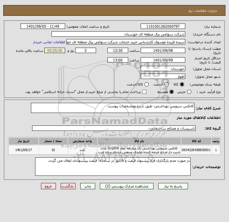 شرح کلی نیاز: کانکس سرویس بهداشتی- طبق شرح ومشخصات پیوست