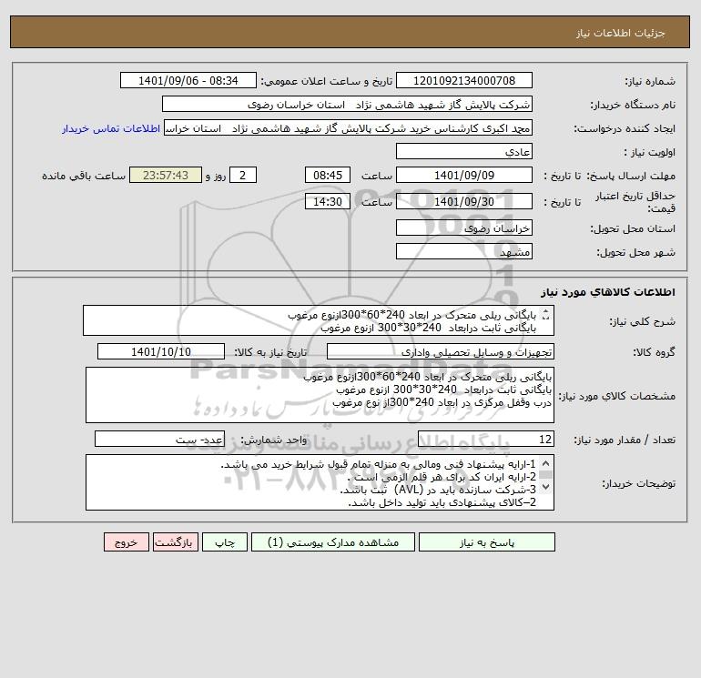 نام دستگاه خریدار:شرکت پالایش گاز شهید هاشمی نژاد استان خراسان رضوی