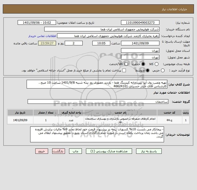 نام دستگاه خریدار:شرکت هواپیمایی جمهوری اسلامی ایران هما