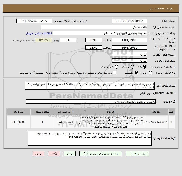 شرح کلی نیاز: نصب و راه اندازی و پشتیبانی سیستم جامع جهت یکپارچه ساری سامانه های سرویس دهنده و گیرنده بانک. ایران کد مشابه