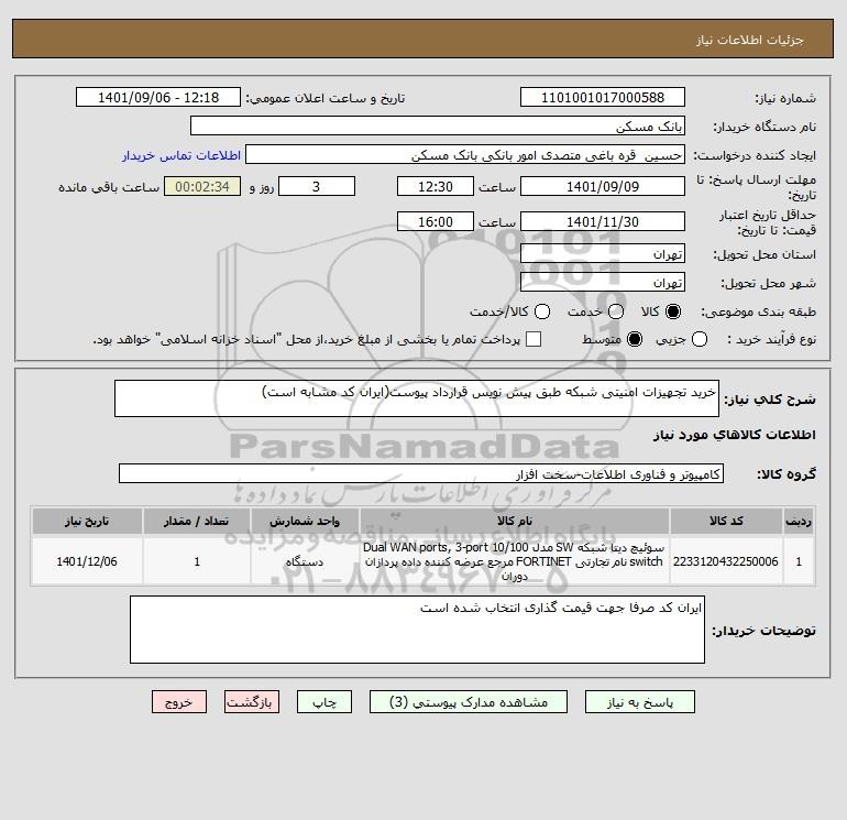 شرح کلی نیاز: خرید تجهیزات امنیتی شبکه طبق پیش نویس قرارداد پیوست(ایران کد مشابه است)