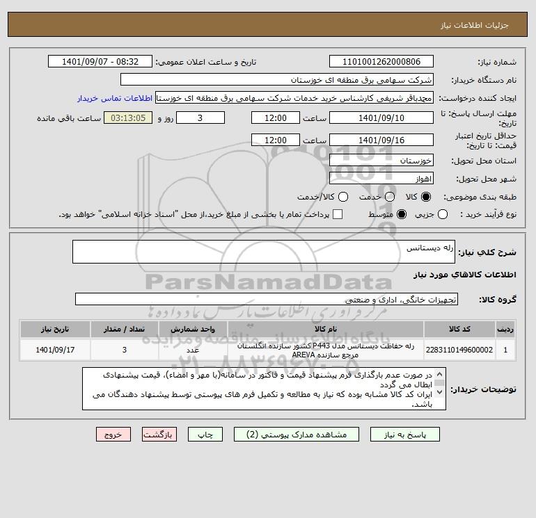 نام دستگاه خریدار:شرکت سهامی برق منطقه ای خوزستان