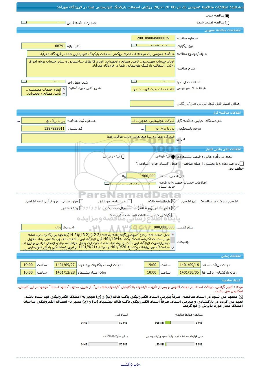 | مبلغ تضمین | 900,000,000 | واحد پول | ریال |