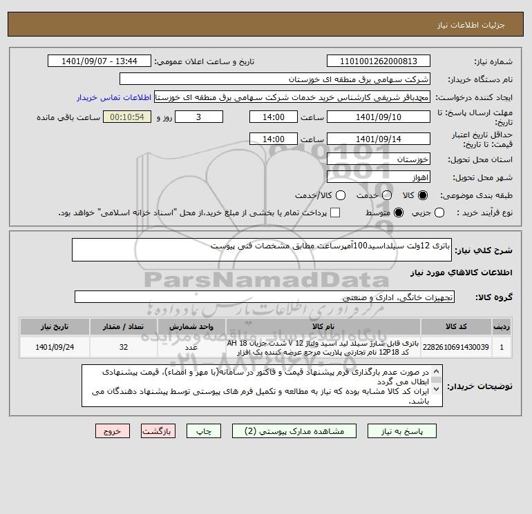 استعلام باتری 12ولت سیلداسید100آمپرساعت مطابق مشخصات فنی پیوست, استعلام باتری 12ولت سیلداسید100آمپرساعت مطابق مشخصات فنی پیوست
