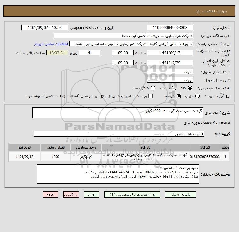 شرح کلی نیاز: گوشت سردست گوساله 1000کیلو