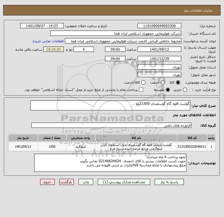 نام دستگاه خریدار:شرکت هواپیمایی جمهوری اسلامی ایران هما