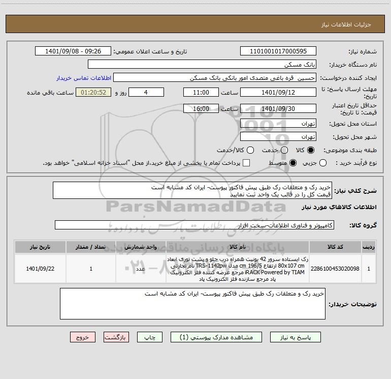 شرح کلی نیاز: خرید رک و متعلقات رک طبق پیش فاکتور پیوست- ایران کد مشابه است