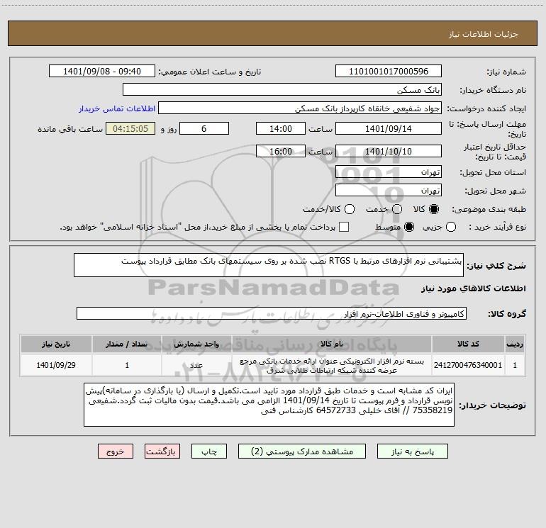 شرح کلی نیاز: پشتیبانی نرم افزارهای مرتبط با RTGS نصب شده بر روی سیستمهای بانک مطابق قرارداد پیوست