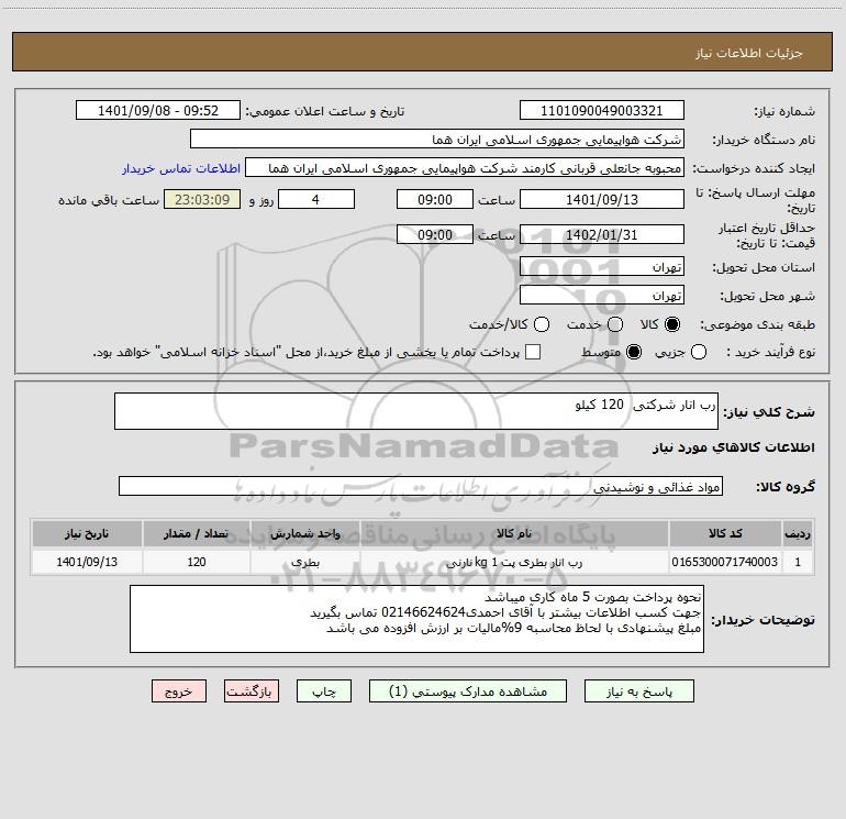 شرح کلی نیاز: رب انار شرکتی 120 کیلو