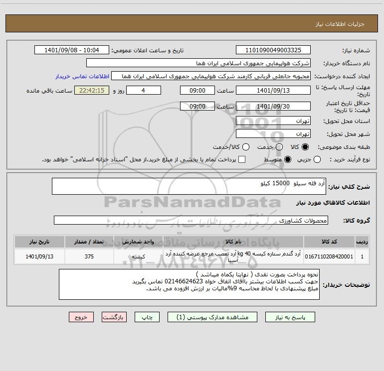 شرح کلی نیاز: آرد فله سیلو 15000 کیلو
