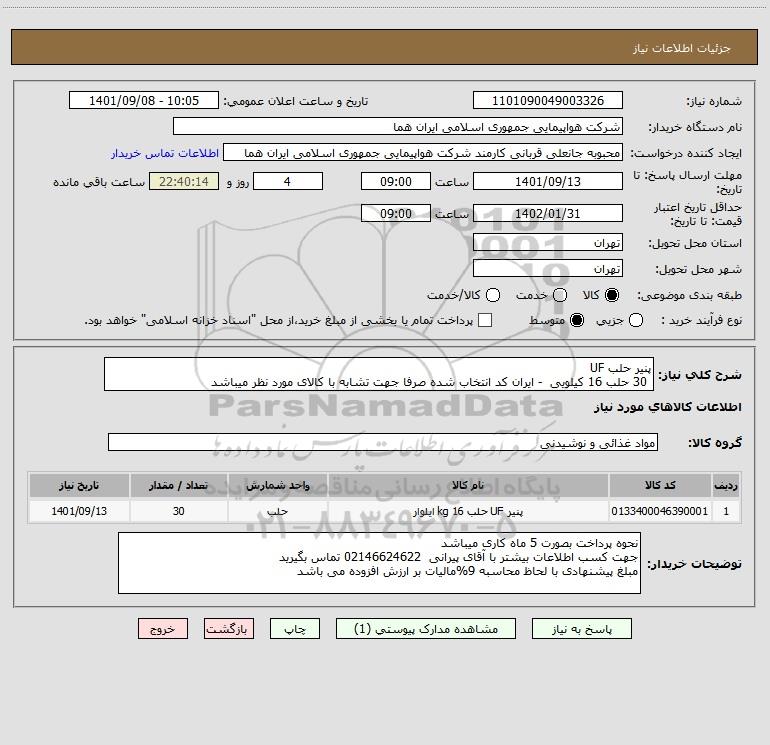 استعلام پنیر حلب UF 30 حلب 16 کیلویی - ایران کد انتخاب شده صرفا جهت تشابه با کالای مورد نظر میباشد ؟