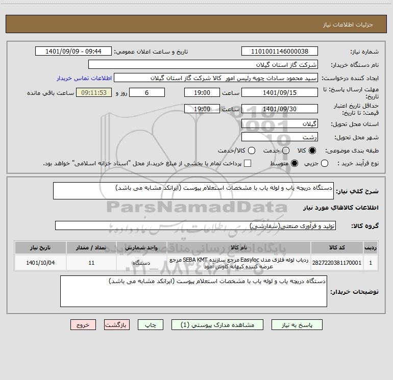نام دستگاه خریدار:شرکت گاز استان گیلان