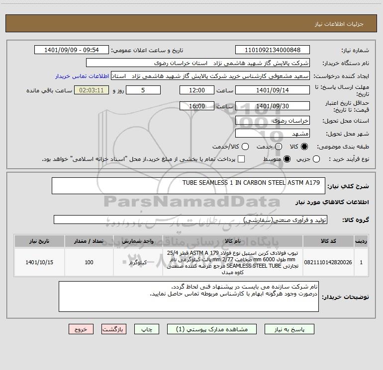 شرح کلی نیاز: TUBE SEAMLESS 1 IN CARBON STEEL ASTM A179