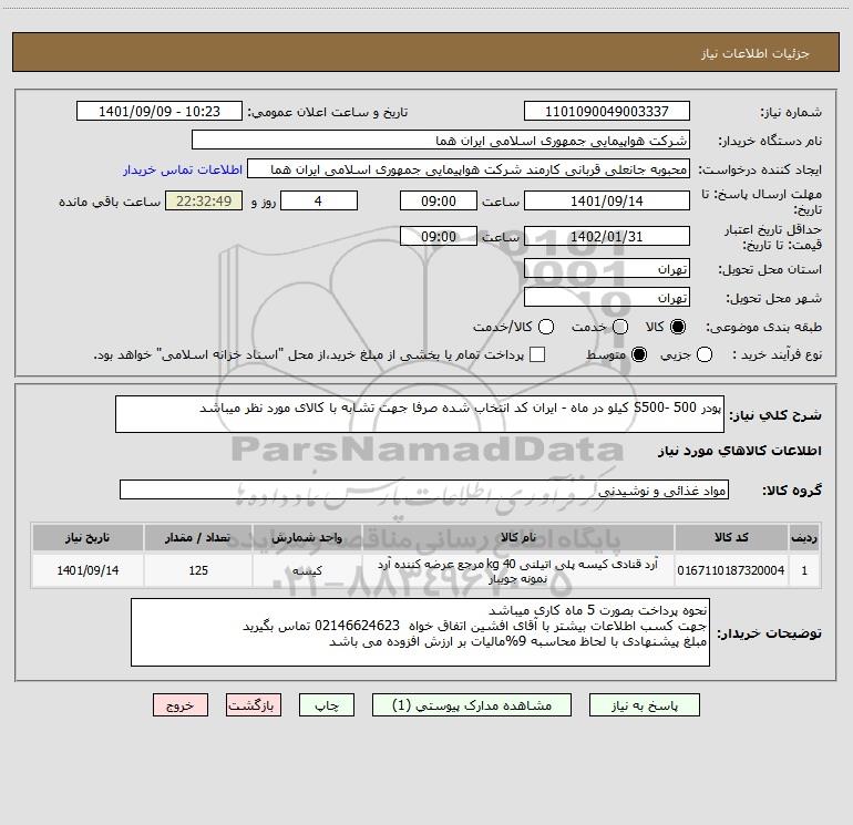 شرح کلی نیاز: پودر S500- 500 کیلو در ماه - ایران کد انتخاب شده صرفا جهت تشابه با کالای مورد نظر میباشد