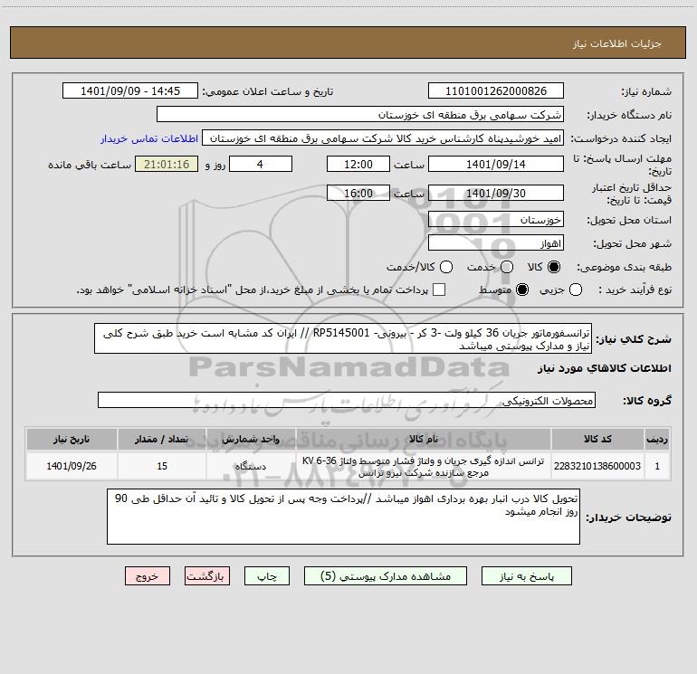 نام دستگاه خریدار:شرکت سهامی برق منطقه ای خوزستان
